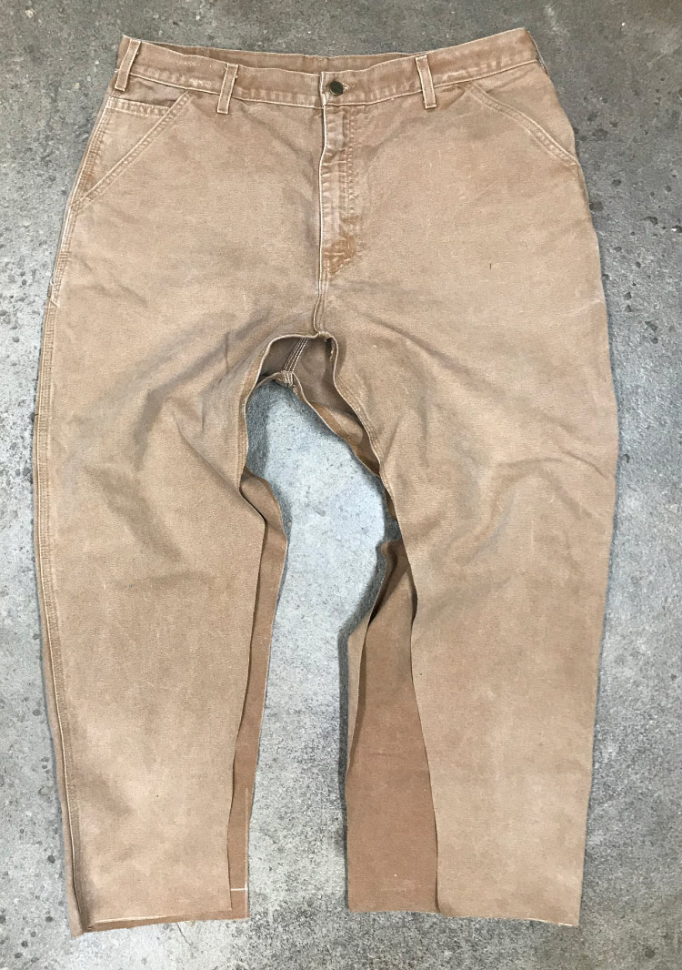 You love work pants but wish they came with a modern fit for casual wear. Here we explain the step-by-step process that went into tapering a pair of triple-needle flat-felled chain-stitched inseam Carhartt carpenter pants from a 20-inch wide leg, down to a 15-inch opening.